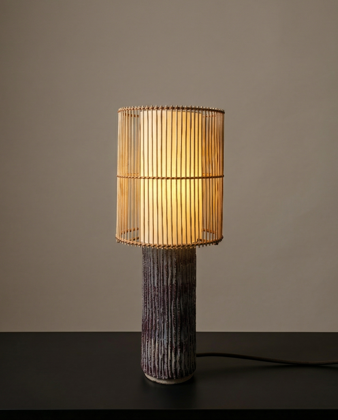 A quiet, ambient glow inspired by the softness of fading light. The In’ei Dusk Lamp features a hand-carved ceramic base, shaped through the Kurinuki technique, revealing an organic, tactile surface. Paired with a gentle, diffused shade, it casts warm, shifting shadows that evolve through the evening.